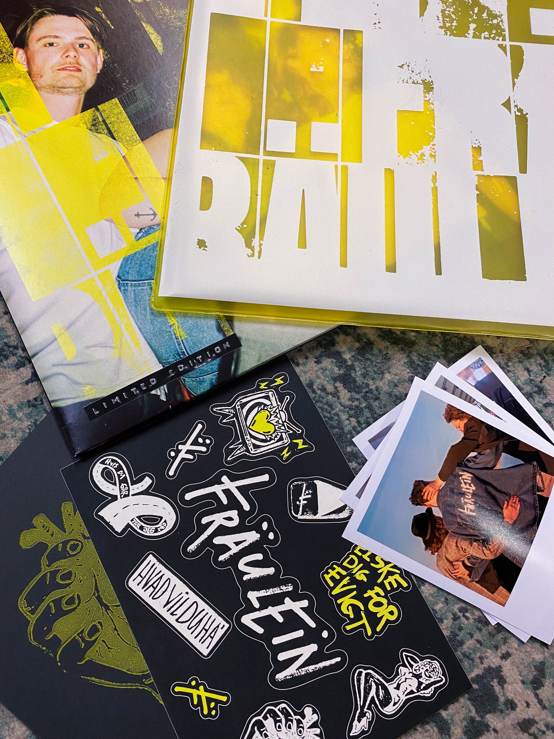 Medfølger: Custom handprintet gult sleeve, klistermærkeark, 3 unikke, personlige fotos fra bandet og et limited edition linoleumstryk. Transparent gul vinyl. 180 gram. Gatefold.